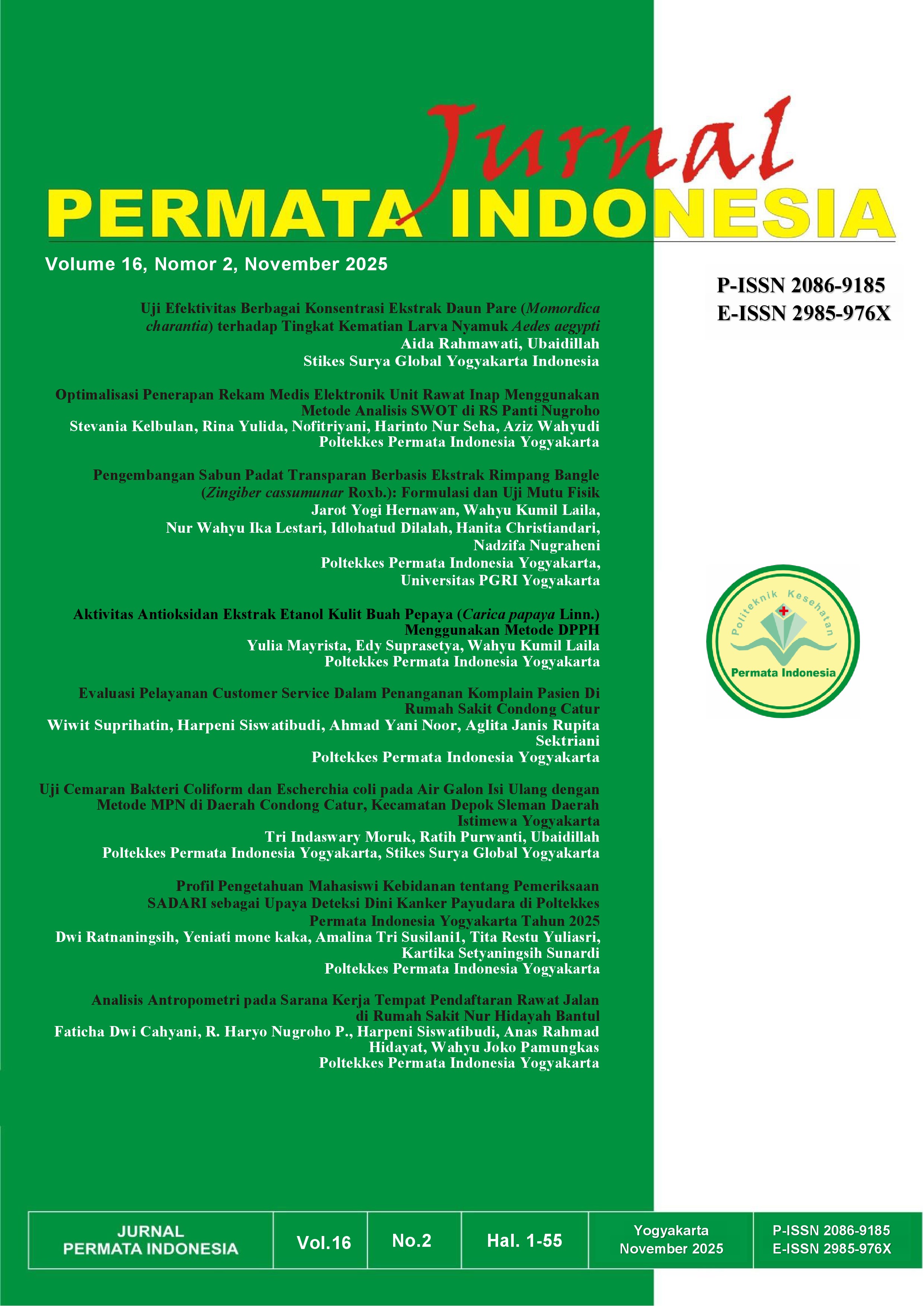 Kejadian demam berdarah telah meningkat pesat di seluruh dunia dalam beberapa dekade terakhir, dengan kasus melonjak dari 505.430 pada tahun 2019 menjadi 5,2 juta pada tahun 2020. Di Indonesia, kasus DBD juga terus meningkat, mencapai 131.265 kasus pada tahun 2022 dibandingkan dengan 116.183 pada tahun 2020 dan 99.551 pada tahun 2019. Upaya mengatasi masalah ini termasuk pengembangan perawatan dan vaksin khusus belum memuaskan. Penggunaan insektisida kimia untuk pengendalian nyamuk memiliki dampak negatif pada manusia, hewan, dan lingkungan, sehingga alternatif ramah lingkungan seperti pestisida nabati menjadi pilihan. Tanaman pare, yang mengandung alkaloid, saponin, flavonoid, asam fenolat, karotenoid, dan steroid/triterpenoid, memiliki potensi sebagai insektisida alami yang efektif melawan larva nyamuk tanpa meninggalkan residu berbahaya. Mengetahui efektivitas pemberian berbagai konsentrasi ekstrak daun pare dan berbagai konsentrasi pada kematian larva nyamuk Aedes aegypti. Penelitian ini termasuk dalam kategori penelitian eksperimen atau percobaan untuk mengidentifikasi dampak yang muncul sebagai hasil dari perlakuan atau eksperimen tertentu. Penelitian ini menggunakan desain penelitian post test dengan kelompok kontrol. Subyek dibagi menjadi 6 kelompok, kelompok kontrol positif (temephos), kontrol negatif, konsentrasi 2,5%, 5%, 7,5% dan 10% per 50ml aquades dengan 6 kali pengulangan. Pengamatan dilakukan setelah 24 jam. Data kematian larva Aedes aegypti dianalisis menggunakan uji kruskal wallis dan mann withney U test. Diperoleh hasil tidak ada kematian larva pada control negatif, kematian 53% pada konsentrasi ekstrak daun pare 2,5%, 72% pada konsentrasi 5%, 82% pada konsentrasi 7,5% dan 93% pada konsentrasi 10%. Hasil uji kruskal wallis 0,000 yang mana nilai ini lebih kecil dari (<) 0,05 yang berarti terdapat pengaruh pada pemberian dosis ekstrak daun pare terhadap kematian larva nyamuk Aedes aegypti. Ekstrak daun pare (Momordica charantia) mempunyai pengaruh terhadap kematian jentik nyamuk Aedes aegypti.